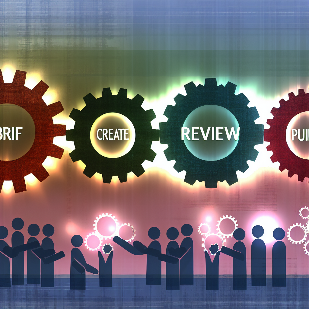 Quy trình hoàn chỉnh: Brief → Create → Review → Publish.